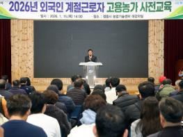 정읍시는 15일 농업기술센터에서 2026년도 법무부 배정 농가를 대상으로 외국인 계절근로자 프로그램 사전 교육을 진행했다.이날 교육에는 지난 12월 말 법무부로부터 외국인 계절근로자 배정을 승인받은 농