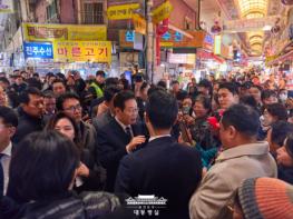 이재명 대통령은 23일 부산에서 열린 국무회의를 마친 뒤, 부산진구 부전역 인근에 위치한 부전시장을 방문해 시장을 방문한 시민들, 시장 상인들과 만나 민생 현장을 살폈다.부산진구에 위치한 부전시장은