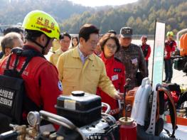 이재명 대통령은 6일 오후 강원도를 방문해 관·군의 산불 진화 장비와 대응체계를 점검한 뒤, 동해안 산불 위험 지역을 시찰했다.이 대통령은 취임 직후부터 관계기관에 가용 가능한 자원을 총동원하는 등
