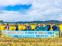 칠곡군은 23일 왜관읍 금남리에서 ‘칠곡군 프리미엄 쌀 재배단지 벼베기 행사’를 개최했다. 김재욱 칠곡군수는 농작업 현장을 찾아 벼베기 작업을 함께 했으며 농업인들의 고충과 건의사항을 수렴하기도