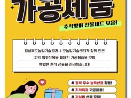 경상북도농업기술원은 다가오는 추석 명절을 맞아 지역 특색이 담긴 선물세트 30종을 선보였다.이번에 소개하는 제품은 성주 참외로 만든 ‘꿀참외떡’과 구미의‘멜론빵’, 영천의‘흑보리현미칩’등 과자·