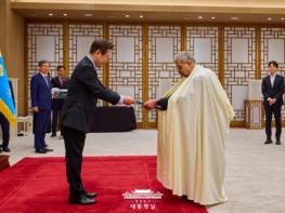 이재명 대통령은 오늘 오후 대통령실에서 개최된 신임장 제정식에서 신임 주한 상주대사 7명으로부터 신임장을 제출받았다. 신임장 제정식은 파견국의 국가원수가 자국의 신임 대사에게 수여한 신임장을 주