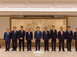 이재명 대통령은 30일 한일의원연맹의 카운터파트인 일한의원연맹 회장, 스가 요시히데(菅 義偉) 전 일본 총리를 접견했다.스가 전 총리는 2023년 3월부터 일한의원연맹 회장을 역임하고 있으며, 이번 방한