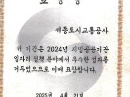 세종도시교통공사, 모범적 고용정책으로 행안부 장관표창 수상 !