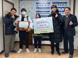 광명시 하안북중학교 2학년 5반 학생들은 지난 24일 연말을 맞아 지역 내 어려운 이웃을 돕기 위해 ‘학생 1인 1라면 기부’ 활동으로 모은 라면 1박스를 하안1동 지역사회보장협의체에 전달했다.전달식에는