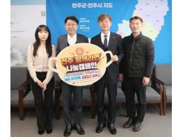 국민건강보험공단 전주남부지사는 22일 전주시장실을 찾아 전주시에 성금 200만 원과 김장김치 20박스를 전달했다. 이번 후원은 국민건강보험공단 전주남부지사의 사회공헌기금사업을 통해 마련된 것으로, 1