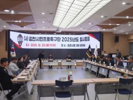 김천상무가 2025년도 임시총회를 개최했다.김천상무프로축구단이 12월 23일 오전 11시, 김천시청 3층 대회의실에서 2025년도 임시총회를 개회했다. 임시총회에는 배낙호 구단주, 이재하 대표이사, 김천시체
