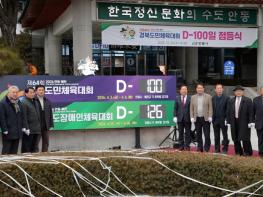 예천군은 제64회 경북도민체육대회의 성공 개최와 군민 참여 분위기 조성을 위해 24일 오후 4시, 군청에서 도민체전 D-100 준비상황 보고회, 카운트다운 행사를 진행했다. 이날 행사는 부서별 준비상황을 점