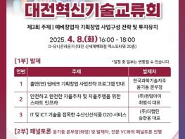 대전시는 오는 4월 8일, 대전신세계 엑스포타워 20층 D-유니콘라운지에서 2025년 제3회‘대전혁신기술교류회(DITEC)’를 개최한다. 이번 교류회는 ‘예비창업자 기획창업 사업구성 전략 및 투자유치’를 주
