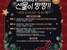 제주시는 12월 24일과 25일 오전 11시부터 오후 6시까지 제주중앙지하상가 일대에서 ‘크리스마스: 선물이 팡팡’ 세일 페스타를 개최한다고 밝혔다. 세일 페스타는 중소벤처기업부 공모사업으로 선정돼 올