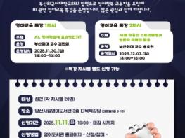 양산시립영어도서관이 부산외국어대학교와 협력하여 인공지능(AI) 시대의 영어학습 방향을 모색하는 영어교육특강 'AI×English'를 오는 11월 30일과 12월 7일, 총 2차시로 운영한다고 밝혔다. 이번 특강은