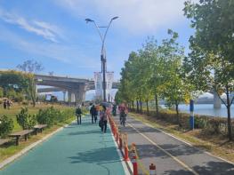 구리시는 안전한 '2025 구리 유채꽃 축제' 운영을 위해 보행로와 자전거도로를 구분하는 시설물인 차선규제봉과 체인 등을 한강시민공원 주차장부터 유채꽃 단지 입구로 연결되는 고덕토평대교 하부까지 약