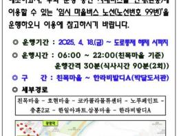 안양시는 신안산선 공사현장 붕괴 지점 인근 도로가 전면 통제되면서 대중교통 불편을 겪고 있는 박달동 친목·호현마을 주민 등을 위해 오는 18일부터 마을버스 99번(1대)을 긴급 투입해 임시 운행한다고 17