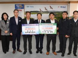 창녕군은 산청군 산불진화대 성금 모금 기간 각계각층의 다양한 기관·단체들로부터 따뜻한 손길이 이어지고 있다고 9일 밝혔다. 우선, 지난 8일 창녕읍 임자생(72년생)연합회(회장 김상헌)에서 성금 100만