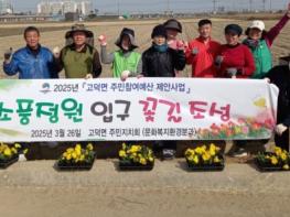 평택시 고덕면 주민자치회는 지난 26일 주민자치 위원 20여 명이 참여한 가운데 깨끗하고 아름다운 소풍정원 이미지 제고를 위해 소풍정원 입구 일대에 봄꽃을 심었다. ‘소풍정원 입구 꽃길 조성’ 사업은