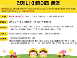 안산시는 단원구 신길동에 소재한 시립아기별어린이집이 경기도로부터 ‘언제나 어린이집’으로 지정받고 운영에 착수한다고 15일 밝혔다.경기도와 안산시 돌봄 정책의 일환인 언제나 어린이집은 영유아를