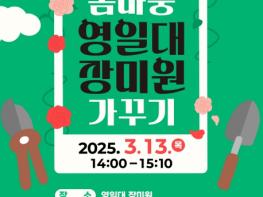 포항시는 지역 대표 명소인 영일대장미원에서 오는 13일 시민과 함께하는 ‘봄 마중 영일대장미원 가꾸기’ 행사를 개최한다. 오후 2시부터 개최될 예정인 이번 행사는 녹지 분야 비영리 민간단체를 비롯한