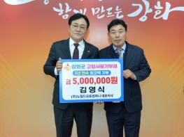 강화군은 5일 김영식 ㈜뉴월드오토컴퍼니 대표가 고향사랑기부제 3년 연속 최고액 기부자로 이름을 올렸다고 밝혔다. 김영식 대표는 고향사랑기부제가 처음 시행된 2023년부터 2024년까지 매년 개인이 기부