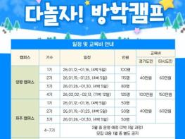 경기도평생교육진흥원, 초3~중1 대상 '다놀자! 방학캠프' 운영. 내년 1월 개강