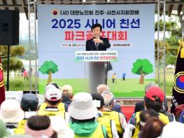 (사)대한노인회 진주시지회와 사천시지회가 주최하고, 진주·사천시파크골프협회가 주관한 ‘(사)대한노인회 진주·사천시지회장배 시니어 친선 파크골프대회’가 23일 진주 송백파크골프장에서 성황리에 개최