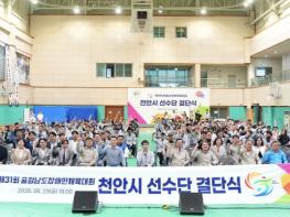 천안시장애인체육회는 제31회 충청남도장애인체육대회를 앞두고 23일 필승을 다짐하는 결단식을 개최했다. 이날 결단식에는 천안시장애인체육회장인 김석필 천안시장 권한대행 부시장을 비롯해 선수와 보호