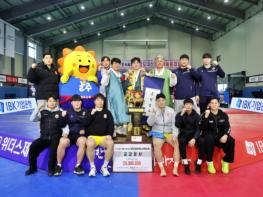 울주군 해뜨미씨름단 소속 정종진 선수가 6일 강원특별자치도 평창군 진부생활체육관에서 열린 ‘위더스제약 2025 민속씨름 평창오대산천장사씨름대회’에서 금강장사에 등극했다.정종진은 이날 5판 3선승제