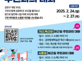 금천구는 오는 3월 4일과 6일, 퇴근길에 주민들과 직접 소통하는 ‘2025년 금천구 주민과의 대화’를 개최한다고 밝혔다.행사는 지난 1월에 진행된 ‘동 새해인사회’가 평일 낮에 열려 직장인과 청년층의