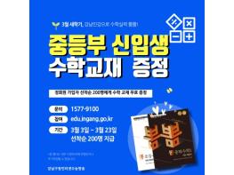 꿈이 모이는 도시, 미래를 그리는 강남구가 3일부터 23일까지 강남인강 신규 가입자를 대상으로 수학 개념을 쉽게 알려주는 ‘뽐 수학 시리즈’ 교재를 무료 증정하는 신입생 교재 증정 이벤트를 진행한다.