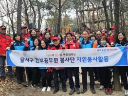 대구 달서구 간부공무원봉사단 42명은 기후위기 대응의 일환으로 지난 1일 한실공원(대곡동 1088) 일원에서 편백나무 400그루를 식재하는 봉사활동을 진행했다. 이날 행사에는 지역 주민 100여 명이 함께 참