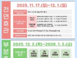고양특례시 한뫼도서관은 공간 및 환경개선 공사 등을 위해 오는 11월 17일부터 12월 1일까지 15일간 임시 휴관한다고 밝혔다. 전체 공사는 부분 휴실을 포함해 내년 2월 준공을 목표로 진행될 예정이다. 이