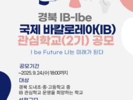 경북교육청은 ‘경북 국제 바칼로레아(IB) 관심학교(2기)’ 공모 계획을 11일 발표했다. 공모 신청은 9월 24일까지이며, 서류 심사와 현장 심사를 거쳐 10월 초 선정 결과가 발표된다. 초·중·고등학교를 대