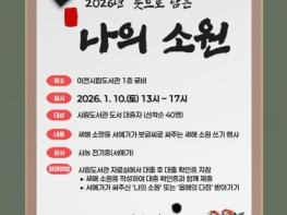 이천시립도서관은 2026년 병오년 새해를 맞아 시민의 한 해 소망과 다짐을 서예가가 붓글씨로 써주는 '2026년 붓으로 담은 ‘나의 소원’' 행사를 오는 1월 10일 오후 1시부터 5시까지 시립도서관 1층 책마