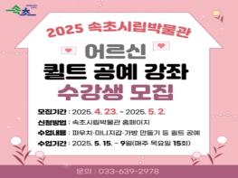 속초시립박물관, 어르신 퀼트 공예 강좌 수강생 모집