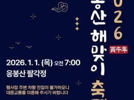 서울 성동구는 2026년 병오년 ‘붉은 말의 해’를 맞아 새해 첫날인 내년 1월 1일 응봉산 팔각정에서 '2026년 응봉산 해맞이 축제'를 개최한다고 밝혔다.이번 행사는 응봉산의 아름다운 일출을 배경으로 새