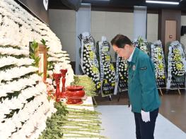 임종식 경북교육감은 28일 경북 의성군청소년문화의집에 마련된 산불 진화 헬기 추락 희생자 고(故) 박현우 기장의 분향소를 찾아 조문하고, 깊은 애도의 뜻을 전했다. 이날 조문에는 임 교육감을 비롯해 부