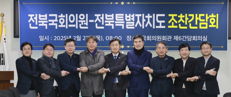 전북특별자치도와 전북 국회의원들은 27일 국회의원회관에서 국회의원들과 조찬간담회를 개최했다. 이날 간담회에는 김관영 전북특별자치도지사와 이원택 더불어민주당 전북특별자치도당위원장을 포함한 더불어민주당 전북 국회의원 8명이 참석해 전북의 주요 현안과 공모사업 대응 전략을 공유했다.
