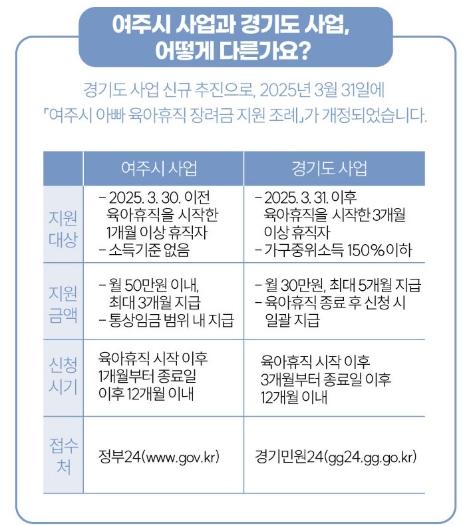 [종합뉴스채널, 김현성기자] 여주시는 2021년부터 남성 육아휴직자를 대상으로 ‘여주시 아빠 육아휴직 장려금’을 지원하고 있다.