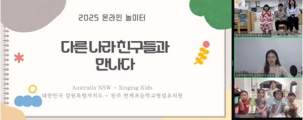 이번 프로그램에는 대한민국 원주 반계초등학교병설유치원과 호주의 Singing Kids가 참여한다. 두 기관의 유아들은 화상회의 시스템을 활용한 온라인 놀이터에서 △전래동화 △전통 놀이 △전통예술 등을 주제로 다양한 활동을 경험하며 서로의 문화를 공유하게 된다.
