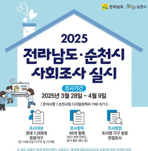 조사 결과는 7월 말 순천시 홈페이지를 통해 공표되며 향후 순천시 정책 수립에 적극 활용될 예정이다.