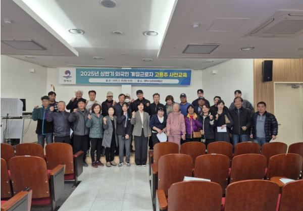 [종합뉴스채널, 신철훈기자] 평택시는 지난 25일 농업기술센터 농촌문화체험관 대강당에서 30여 명이 참석한 가운데 ‘2025년 외국인 계절근로자 고용농가 상반기 사전교육’을 실시했다.