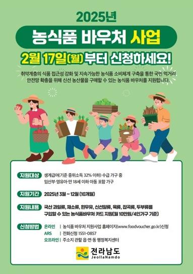 전라남도가 취약계층의 영양 불균형 문제를 해소하고 지속가능한 농식품 소비 기반 확충을 위해 농식품바우처 지원사업을 추진한다.