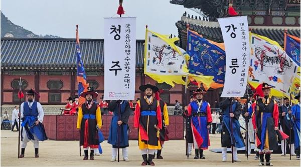 [종합뉴스채널, 김현성기자] 청주시와 청주시문화산업진흥재단은 지난 30일 경복궁 흥례문 일원에서 펼쳐진 ‘2025 전국 수문장 임명의식’에 참여했다.