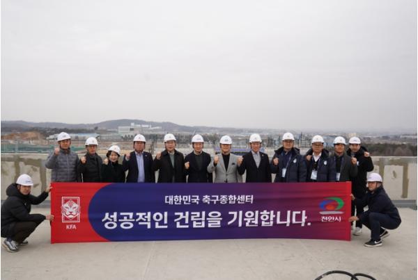 천안시는 2일 정몽규 축구협회장과 박상돈 천안시장, 이재관 국회의원, 박성완 충남축구협회장, 이기호 천안축구협회장을 비롯해 대한축구협회와 시 관계자 20여 명이 대한민국 축구종합센터 현장을 찾아 공사 진행 현황 등을 점검했다고 밝혔다.