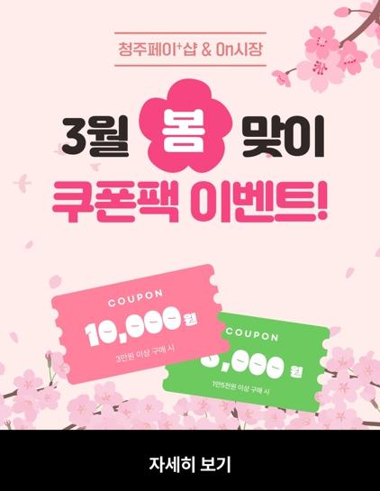 시는 3월 한 달 간 온시장과 청주페이플러스샵의 모든 회원을 대상으로 5천원과 1만원 2종 할인쿠폰 팩을 발행한다.