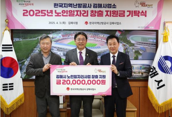 [종합뉴스채널, 김현성기자] 한국지역난방공사는 3일 김해시를 방문 노인일자리 창출을 위한 지원금 2천만원을 기탁했다.