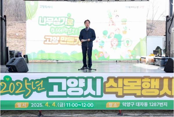 이날 이동환 고양특례시장은 경북 지역에서 발생한 대형 산불에 대한 안타까움을 표한 후, 식목일은 후손들에게 물려줄 내일의 희망을 싹틔우는 날이라며 식목일과 나무심기에 대한 중요성을 강조했다.