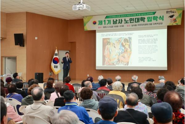 [종합뉴스채널, 최한솔기자] 이상일 용인특례시장은 4일 처인구 남사읍 주민자치센터 3층 대강당에서 열린 ‘제1회 남사노인대학 입학식’에서 입학생 110여 명을 대상으로 특별 강연을 했다.