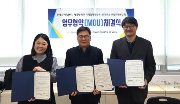 인제군가족센터는 2월 28일 하늘내린센터에서 세경대학교 지역상생연구소, 인제특수교육교과연구회와 업무협약(MOU)을 체결했다.