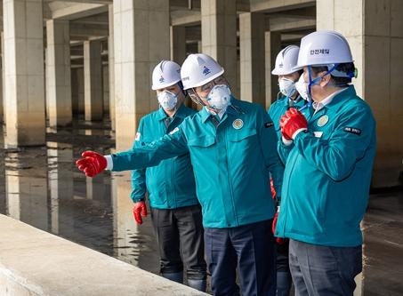 진 구청장은 장화와 안전모를 착용하고 복개 하부 구간으로 들어갔다. 바닥 곳곳에는 쓸려 내려온 토사와 물이 고여 있었다. 거대한 지하 터널 같기도 한 이곳은 장마철 폭우가 내리면 빗물을 일시적으로 가두는 방재시설이다. 빗물 약 50만톤을 저장할 수 있는 규모다.