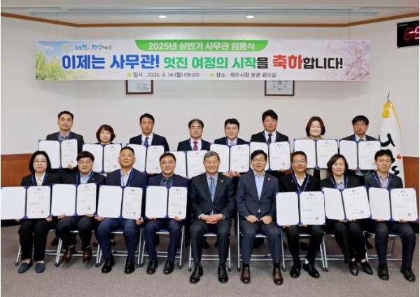 제주시 관계자는 “이번 승진 임용자들이 지역경제에 생기를 불어넣는 2025년을 목표로 민생회복, 균형발전, 혁신성장에 중추적인 역할을 할 것으로 기대한다”고 밝혔다.